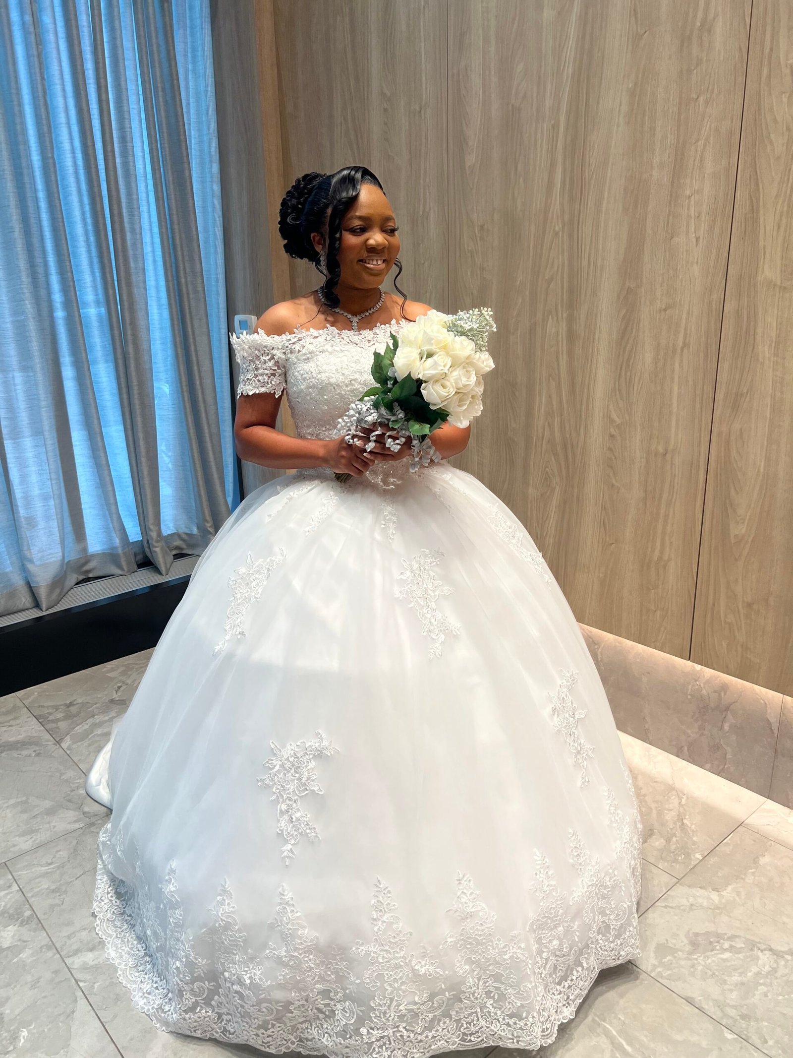 Pre-styled bridal wig Up do. (Installation and traveling fee not included, please book an appointment for consultation)